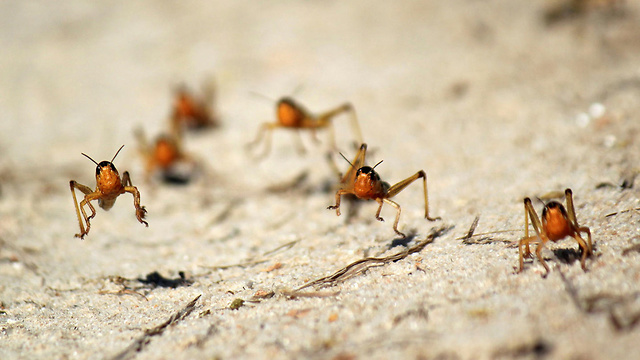 נחילי הארבה מתרבים תוך כדי מעופם בשל שפע המזון הזמין עבורם.